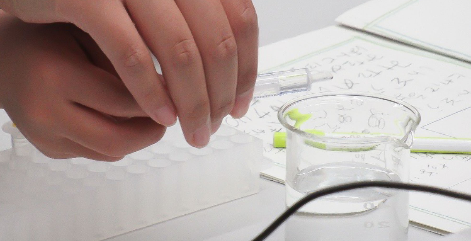 今回のテーマである光る不思議については、実験をしながら確かめていきました。ウミホタルが放つ青白い光は、ルシフェリンという化学物質の酸化によって生じること、その酸化はルシフェラーゼという酵素が引き起こしていることを知りました。ウミホタルはこれらの物質を体の中の別々の部分で作っていることから、乾燥したものをそれぞれすり潰し、水を加えて2つを反応させると光が観察できるはずです。