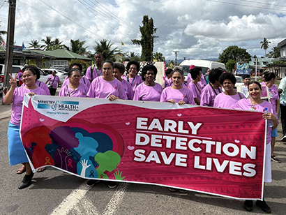 awareness programme in Labasa. Themed “Early Detection Saves Lives,” the event kicked off with a vibrant march led by the Nabala Secondary School Band, the Fiji Police Force, and various community stakeholders. The campaign successfully reached approximately 1,200 people, featuring expert presentations on cervical cancer and mental health. A key focus was placed on the HPV Self-Test and Treat Programme, with interactive Q&A sessions ensuring the public left with a better understanding of preventive health practices.