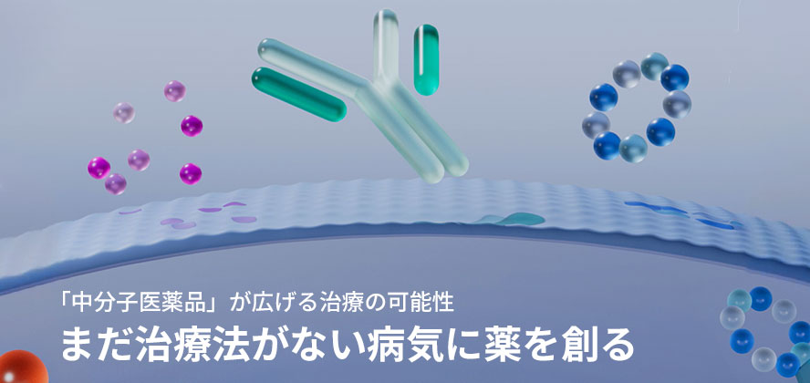 中外製薬は、独自の技術とサイエンスを強みとする、研究開発型の製薬企業です。ロシュ社との協業のもと、革新的な医薬品とサービスを継続的に患者さんへ提供することを目指し、イノベーションの継続的な創出に注力しています。