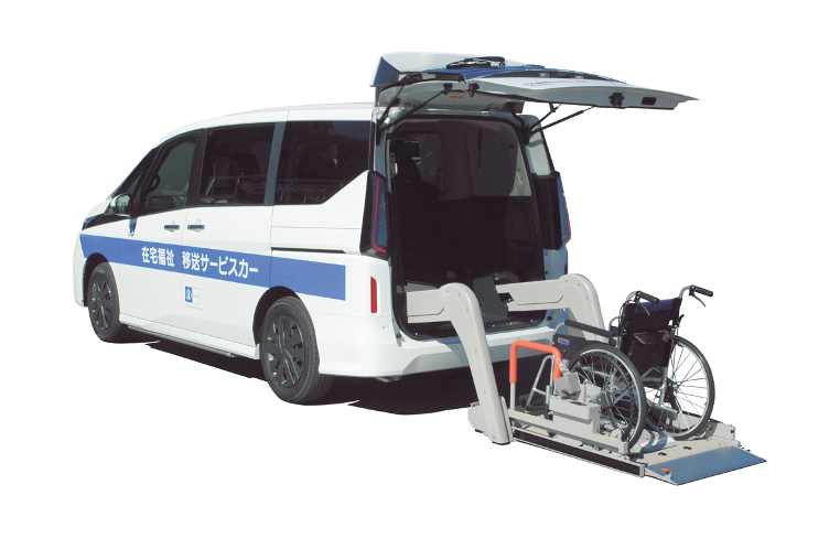 超高齢社会を迎えたわが国では、介護を必要とする高齢の方やお身体の不自由な方が年々増えています。このような方々が住み慣れた地域で安心して自立した生活を送るために、現在、デイサービスやデイケアをはじめとする在宅福祉サービスが様々な施設で行われています。当社が寄贈している「在宅福祉移送サービスカー」は、こうした施設とご自宅を結ぶ移動手段として活用されています。