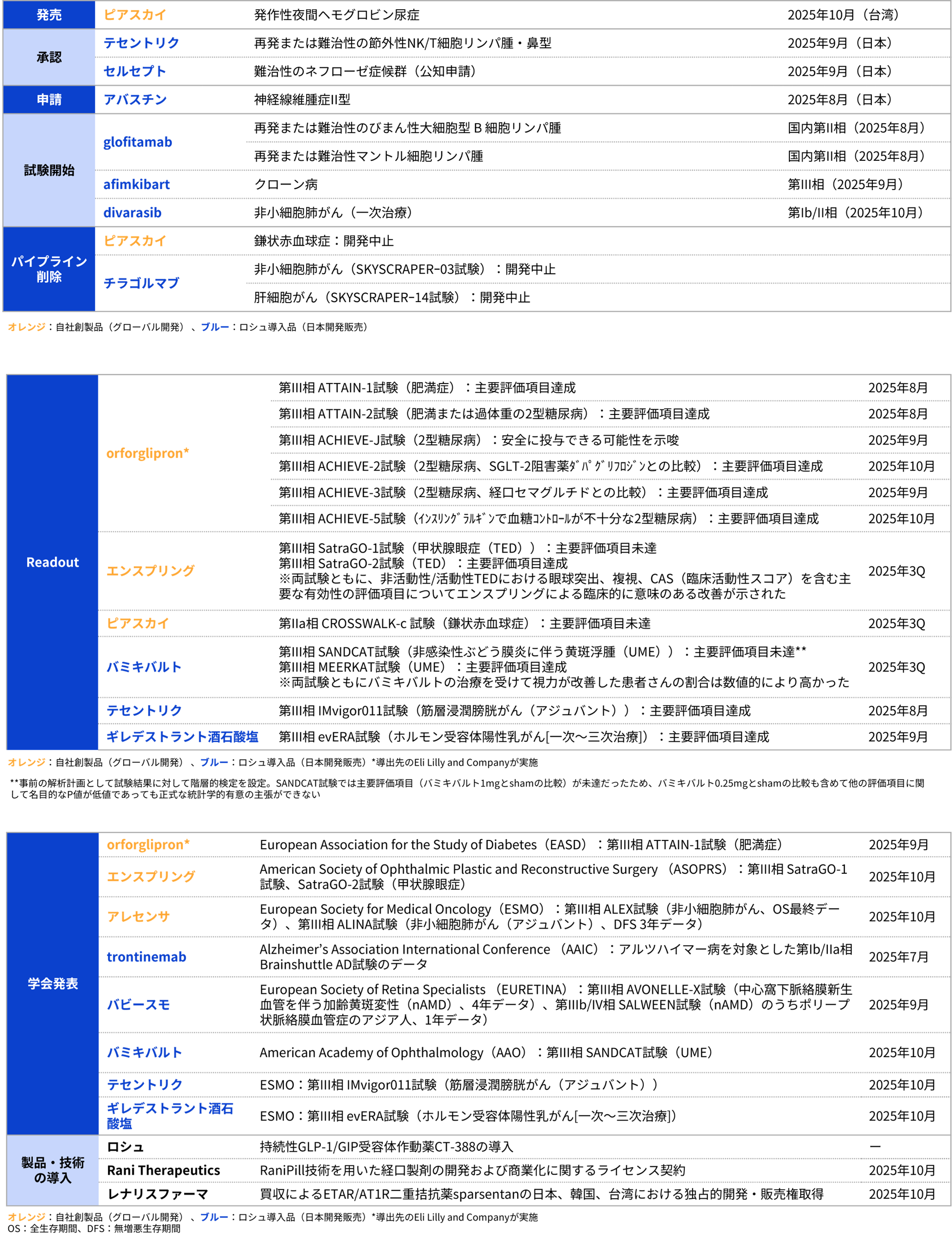 - 自社創製品では、イーライリリー社に導出したorforglipronの複数の第III相臨床試験が主要評価項目を達成したことに加え、ピアスカイを台湾で発売。ロシュからの導入品の開発も順調に進展
