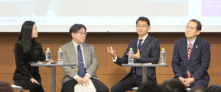 生産技術本部、メディカルアフェアーズ本部、臨床開発本部と幅広い部署の社員から「PHARMONY」活動の具体的な事例を発表し、それぞれの発表に対して、コメンテーター3名から講評が述べられました。