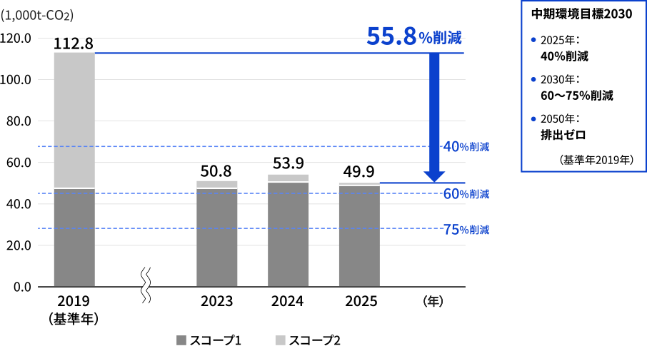 | KPI | 中期環境目標2030 (基準年2019年) |