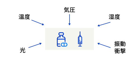 医薬品輸送において最も重要なことは、高品質な医薬品を患者さんへ届けることです。そのため、輸送時に生じる温度や湿度、振動および衝撃等の環境要因から医薬品の品質を守ることが求められます。